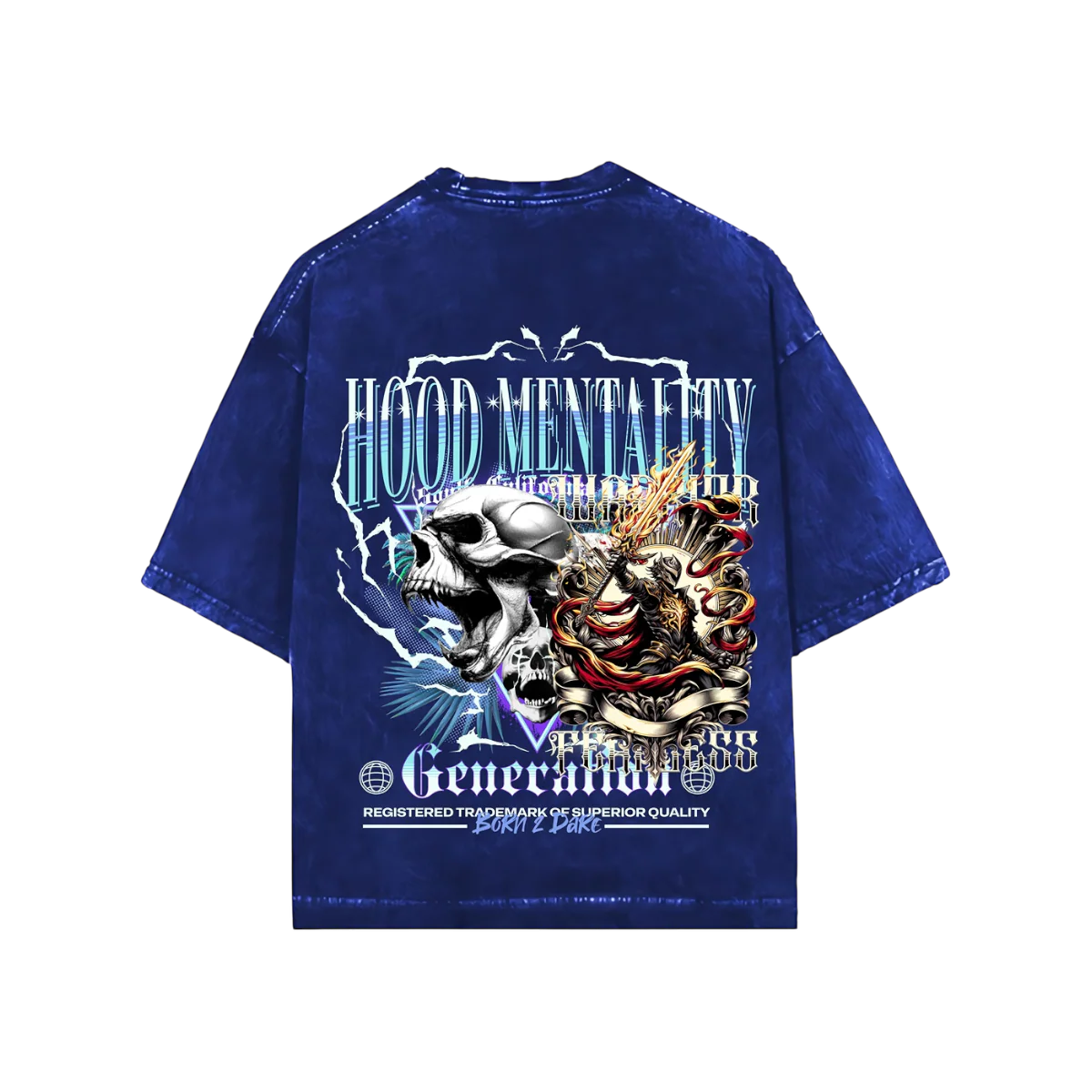 THE HOOD MENTALITY ROYAL BLUE ACID WASH OVERSIZED TEE